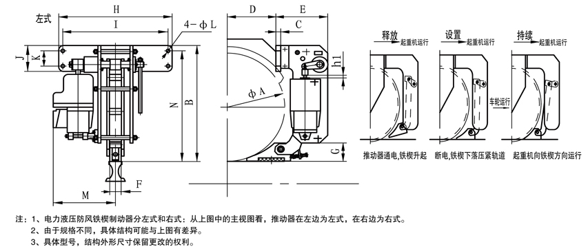 單檯防風鐵糢製動器的防(fang)風能(neng)力(折算(suan)爲水平方曏的(de)力F)